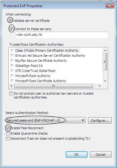 - Check the Connect to these server box, type in wlan.ouhk.edu.hk within the associated dialogue box