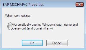 - Click on Configure... button to proceed for further configuration of EAP MSCHAP v2 properties